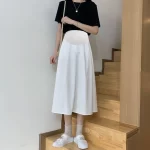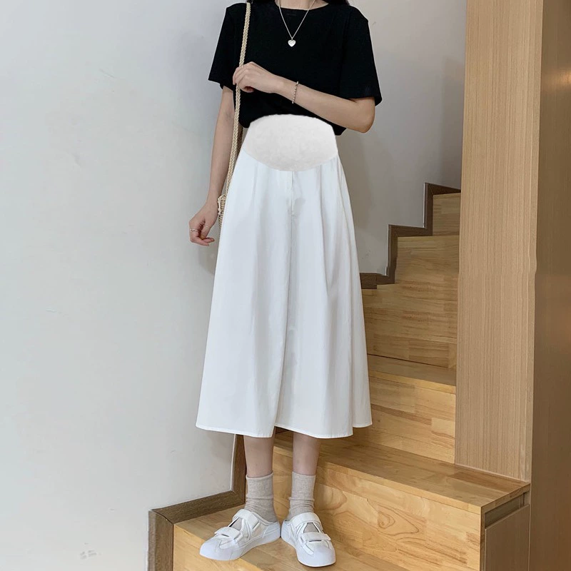 Maternity skirt, fashionable summer outerwear, mid-length, high-waisted, belly-supporting, slimming, versatile A-line skirt, summer umbrella skirt
