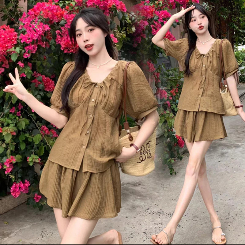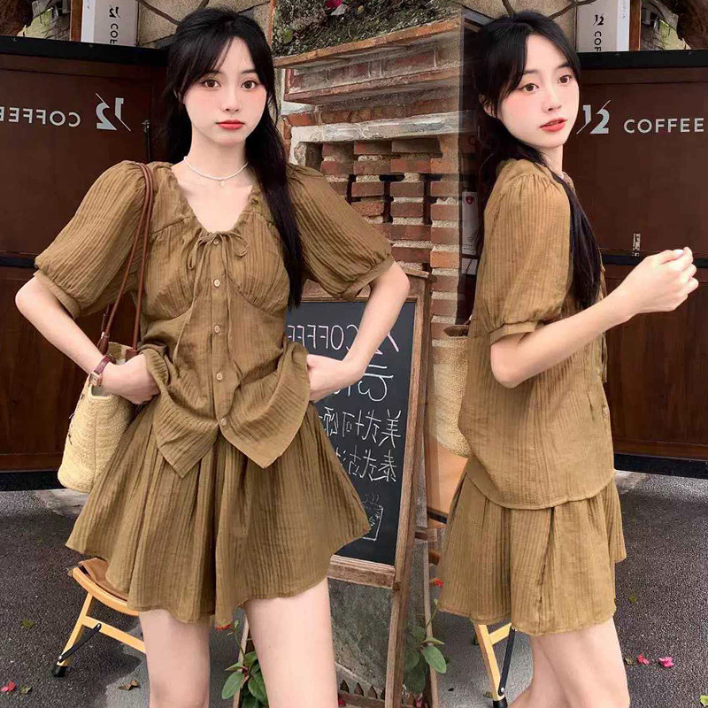 ~ maternity summer two-piece western style outerwear retro age-reducing short-sleeved top shorts suit