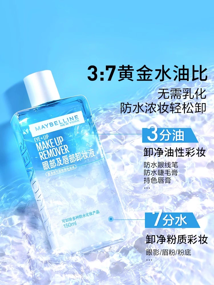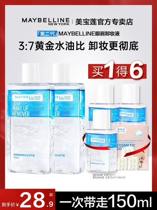 | nameOriginal | Maybelline Makeup Remover Eye and Lip Makeup Remover Water and Oil Separating Cleansing Oil Gentle Makeup Remover 70ml*2 Official Flagship Store |