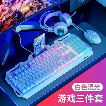 | nameOriginal | Mechanical feel keyboard, mouse and headset three-piece set for e-sports games, high-looking laptop, desktop external office, silent, wired keyboard and mouse set, luminous peripherals for girls |