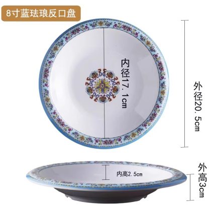 | nameOriginal | # melamine hotel A5 tableware thickened anti-mouth spicy crayfish plate imitation porcelain soup plate restaurant fried rice round |