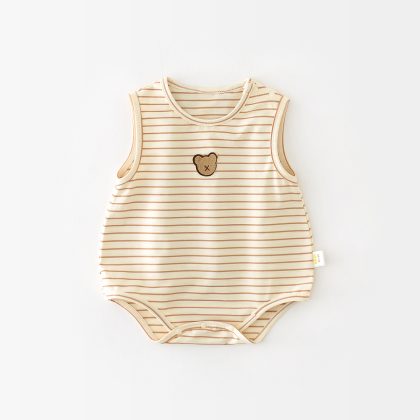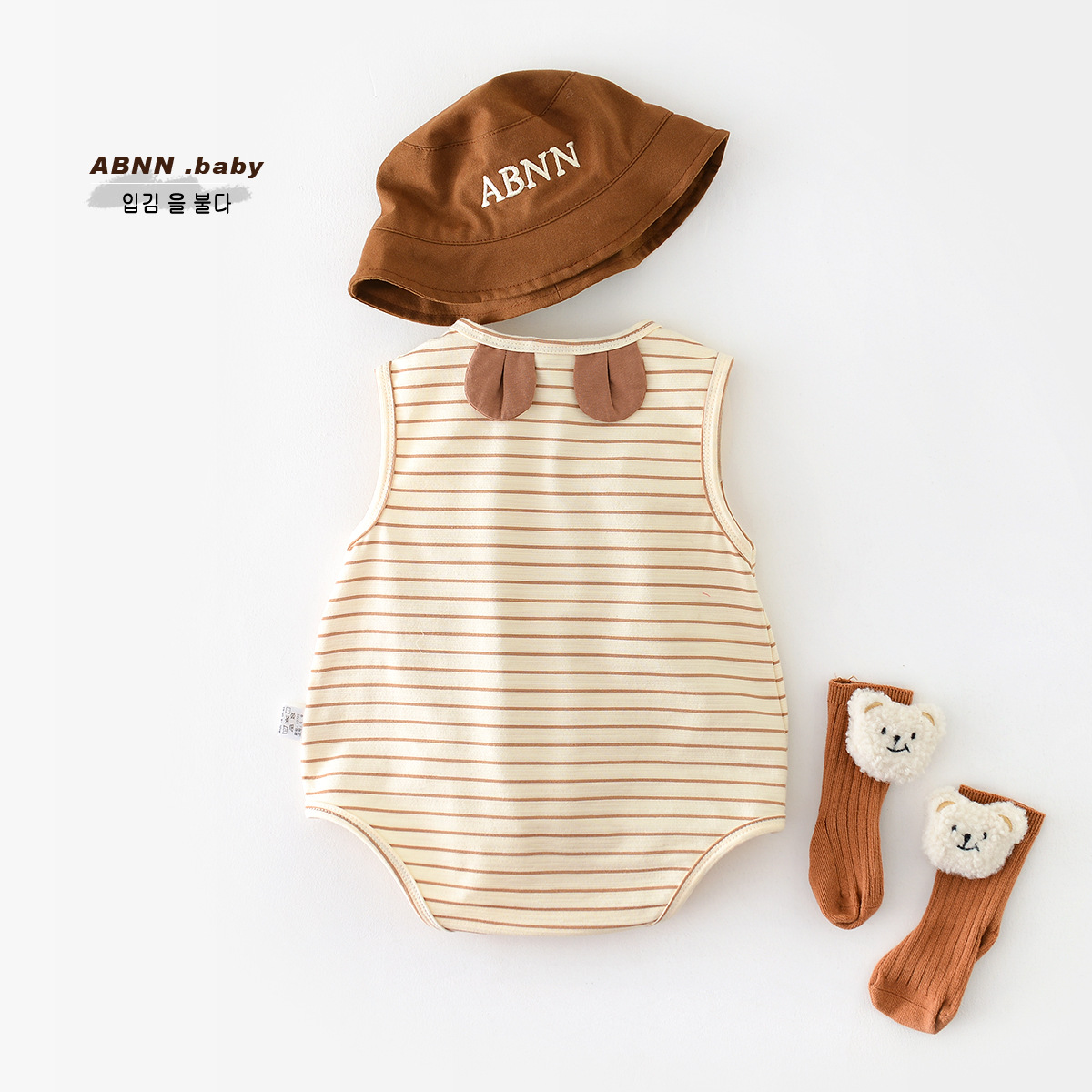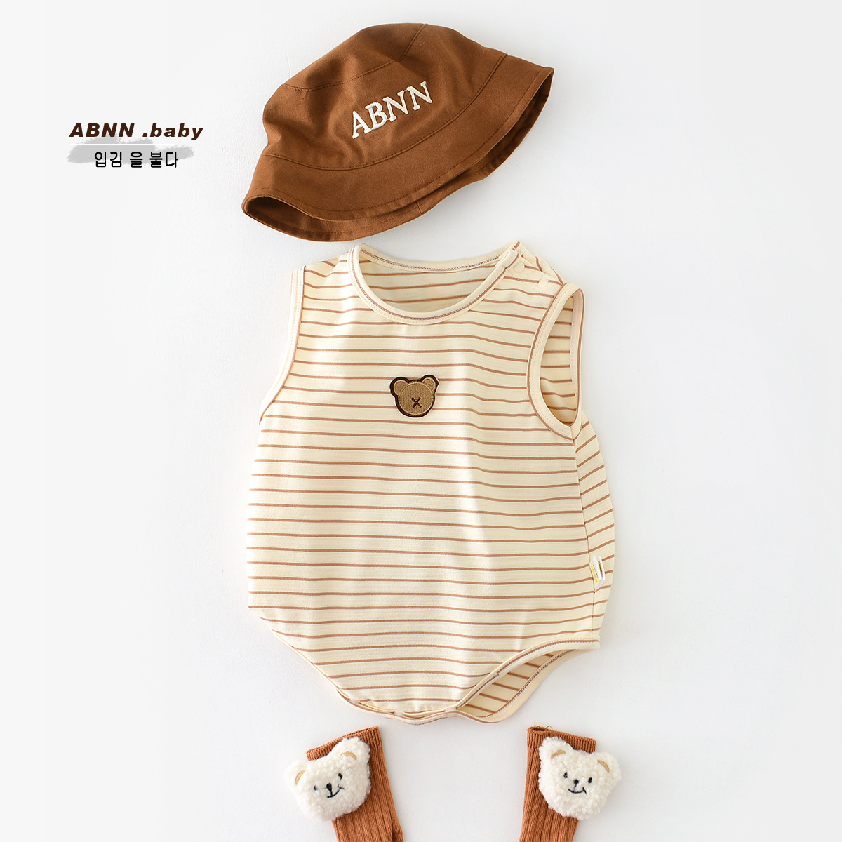 Men's and Women's Baby Summer Clothes Climbing Clothes Baby Bear Striped Sleeveless Thin one-body Hassel Clothes Children's Wrap Fart Clothes 92722