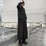 بنطلون أسود واسع الساق ذو تسع نقاط للرجال والنساء بتصميم فضفاض