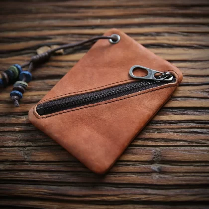Men's and women's mini square bag first-layer cowhide coin purse casual short small purse retro simple genuine leather coin purse
