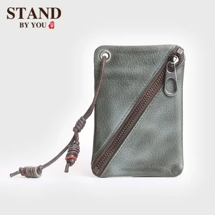 حقيبة مربعة صغيرة للرجال والنساء من الطبقة الأولى من جلد البقر محفظة نقود معدنية غير رسمية قصيرة محفظة صغيرة ريترو بسيطة محفظة جلدية أصلية للعملات المعدنية