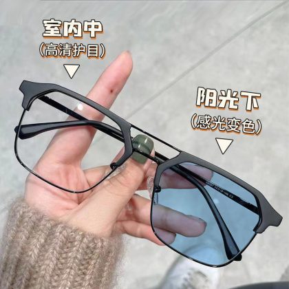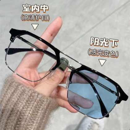 Men's anti-blue light flat lens European and American ins wind myopia glasses Sven scum photosensitive discoloration glasses frame wholesale