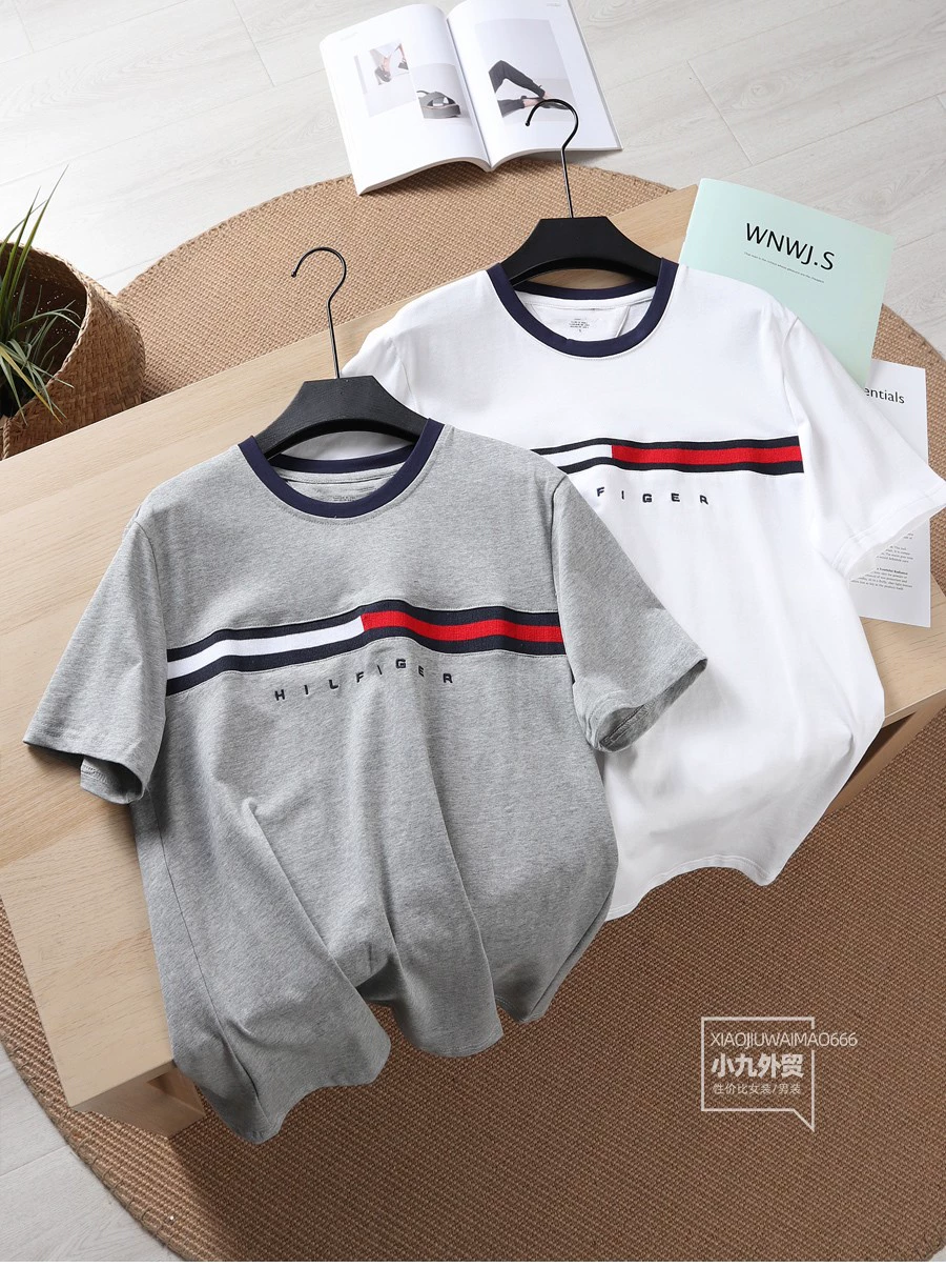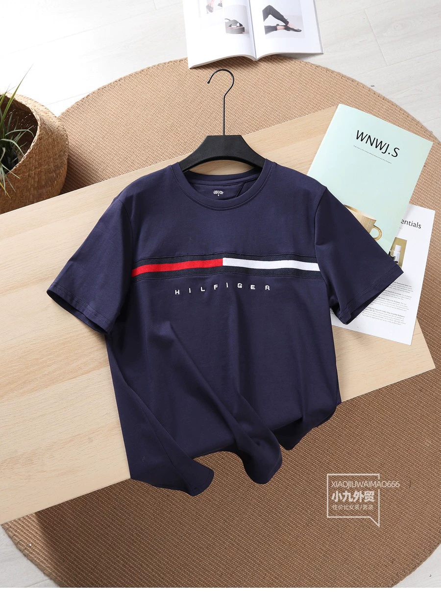 Men's casual short-sleeved T-shirt with contrasting embroidered letters