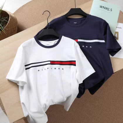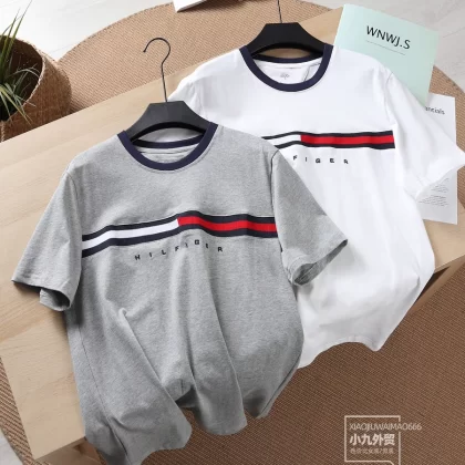تيشيرت رجالي كاجوال بأكمام قصيرة مع حروف مطرزة متباينة