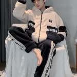 | nameOriginal | Men's coral velvet pajamas, autumn and winter thickened velvet, fashionable casual zipper hooded wearable home wear set |