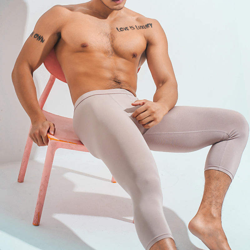 Men's Cropped Autumn Pants Modal Thin Slim-Fit Leggings U-Convex Wear-Free Panties Simple Solid Color Sexy U1007
