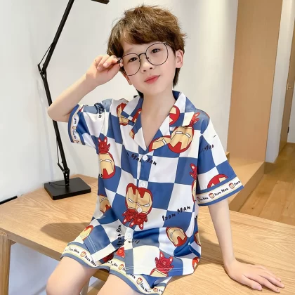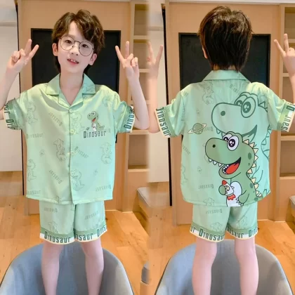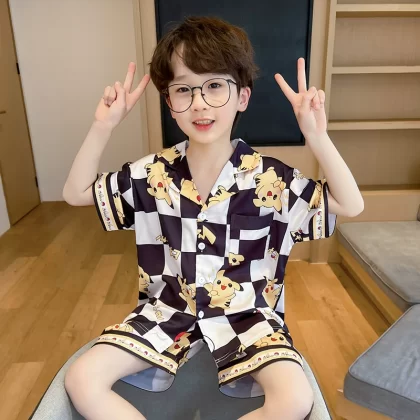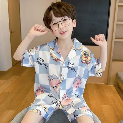| nameOriginal | Men's ice silk summer short-sleeved cartoon pajamas for middle and older children |