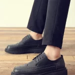 أحذية جلدية للرجال فستان رسمي للأعمال من الجلد أسود وايلد كاجوال أحذية بروك على الطراز البريطاني النسخة الكورية أحذية سميكة للشباب