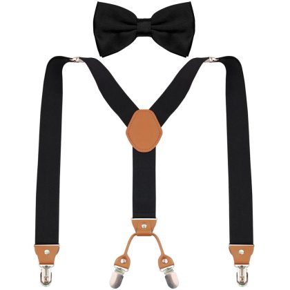 | nameOriginal | Men's Leather Strap Suspenders Round Glue 4 Clip Bow tie suit Strap Adjustable European and American Wedding Strap |