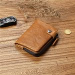 nameOriginal | Men's Short Leather Wallet Vegetable Tanning Top Layer Cowhide Casual Wallet Vertical Buckle Horizontal Wallet for Young Students |