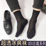Men's Silk Stockings Summer Thin Ice Silk Mid-tube Stockings Sweat Absorbing Breathable Ultra-thin Summer Black Business Socks with Heel