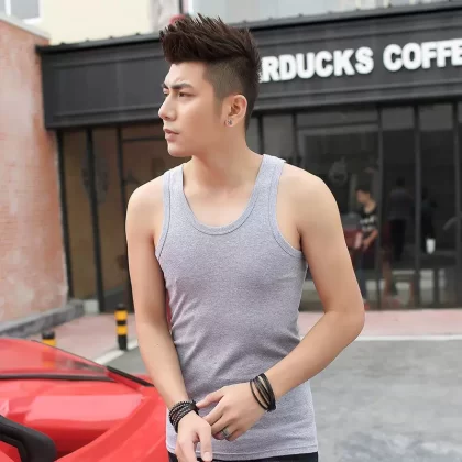 Men's sport slim-fitting two-rib cotton vest