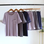 nameOriginal | Men's summer loose modal round tie pocket simple casual short sleeve + shorts home wear suit |