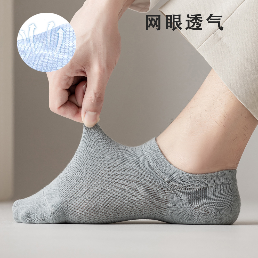 Men's Summer Thin Solid Color Socks Mesh Shallow Mouth Invisible Socks Silicone Non-slip Deodorant Cotton Cotton Yarn Boat Socks