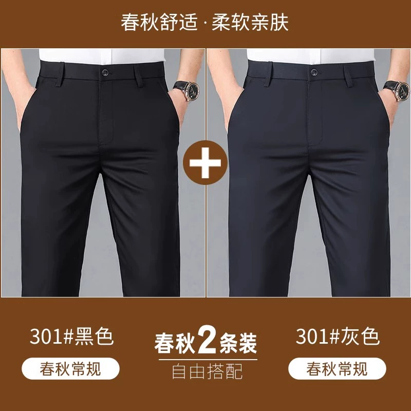 Men's summer trousers, thin, straight, loose, iron-free men's trousers, business casual men's spring and autumn style long trousers for middle-aged and elderly people