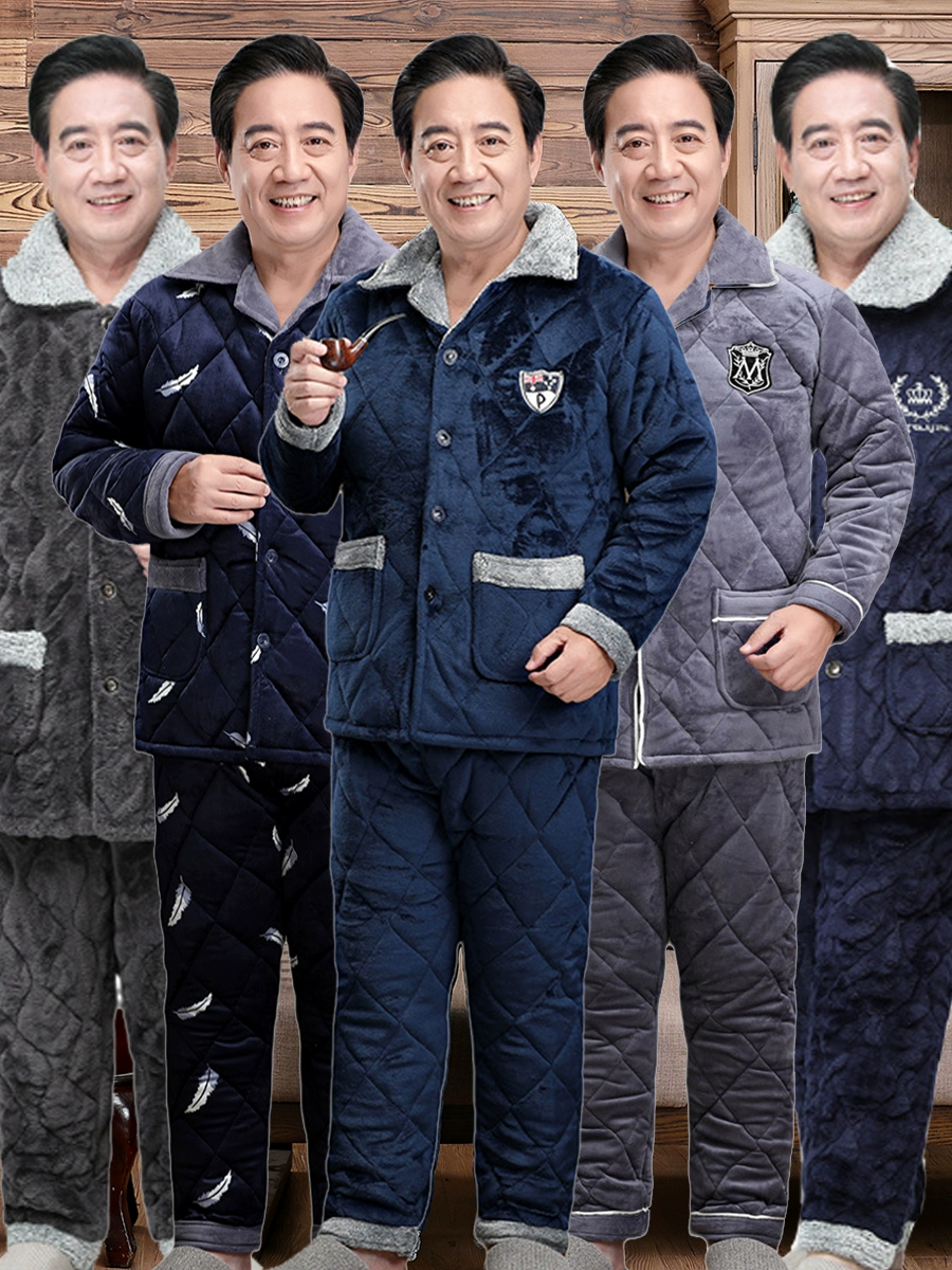 | nameOriginal | Men's thickened flannel coral velvet quilted pajamas, winter velvet cotton jacket, middle-aged dad, middle-aged and elderly suit |