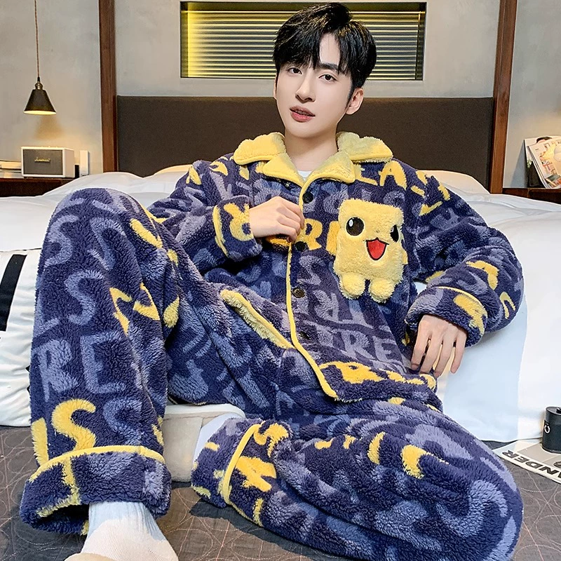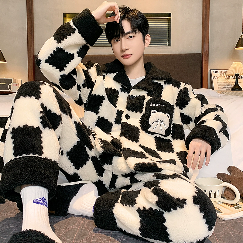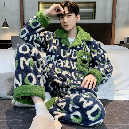 Men's thickened youth flannel winter plus size pajamas