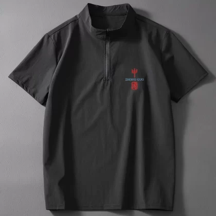 | nameOriginal | Men's Thin Solid Color Half-Zip Stand Collar Short Sleeve Outdoor |