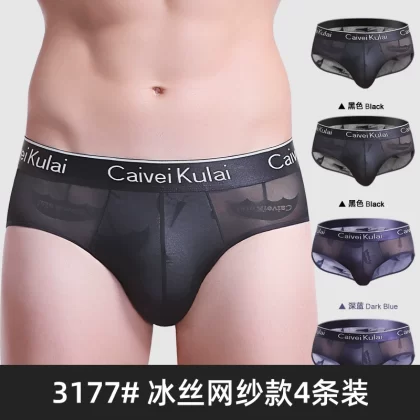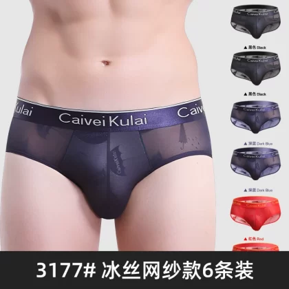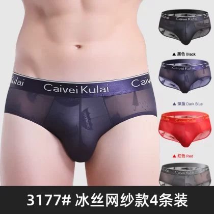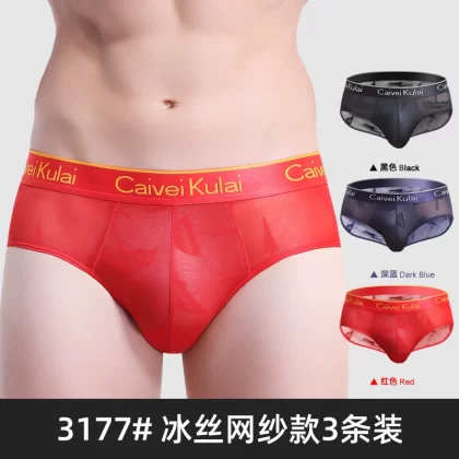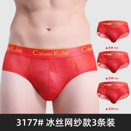 | nameOriginal | Men's underwear briefs ice silk triangle shorts mesh transparent breathable summer thin sexy red bottoms νckν |