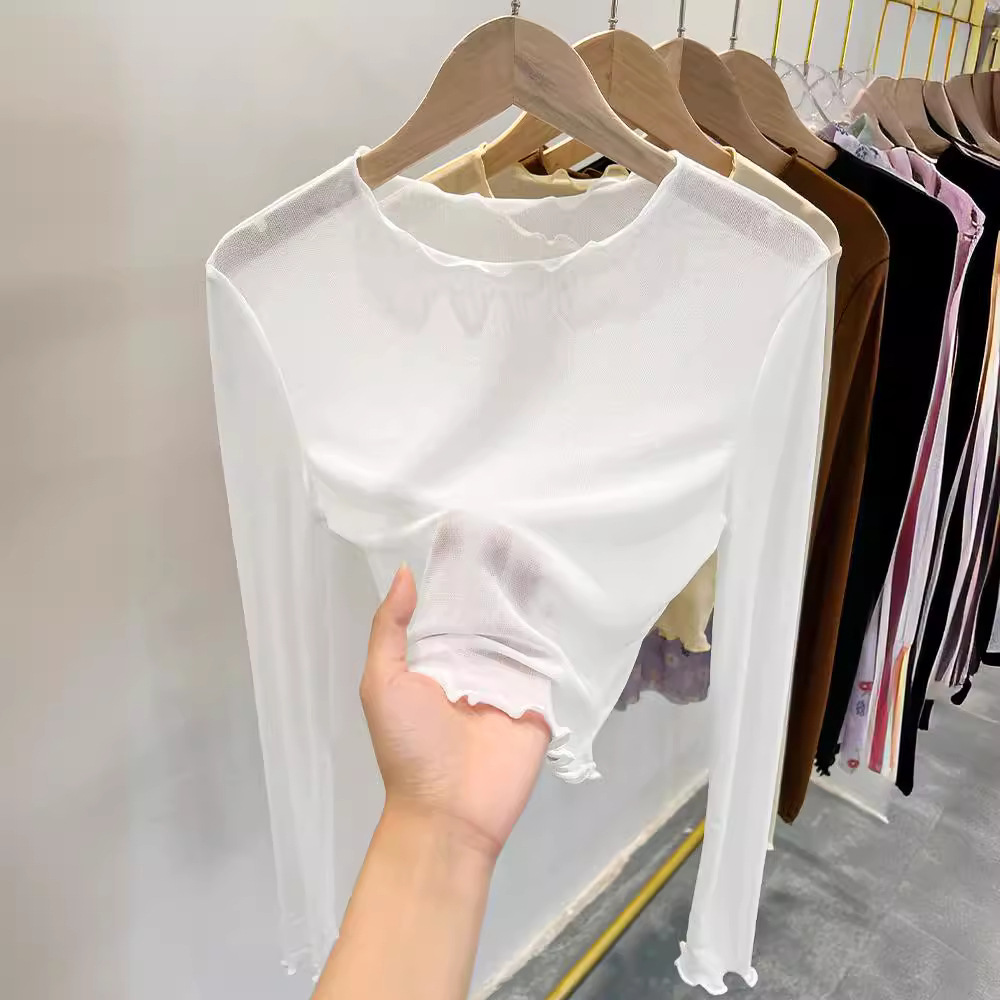 | nameOriginal | Mesh Base Shirt Women's Long-sleeved Slip Skirt Inner Tulle Transparent Crewneck T-shirt Short Lace Top Spring |