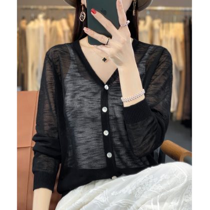 | nameOriginal | Mesh Ice Silk Micro-transparent Sunscreen Cardigan Women's Coat Pure Desire French Thin Long-sleeved Blouse V-neck Design Sunscreen |
