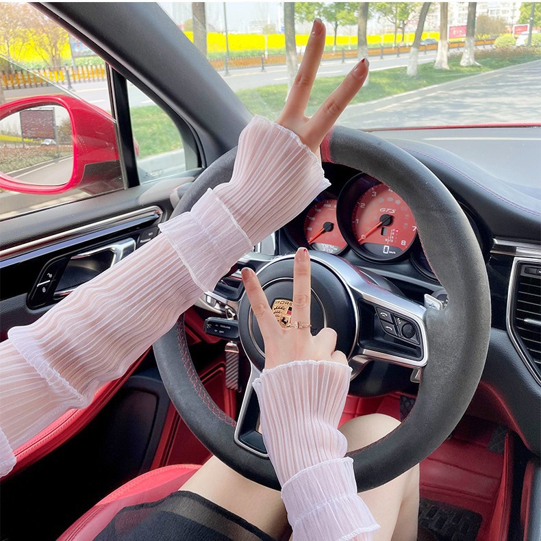 Mesh Sun-proof Sleeves Women's Anti-ultraviolet Ice Sleeves Summer Driving Wrinkle Loose Arm Protectors Thin Ice Sleeve plus size