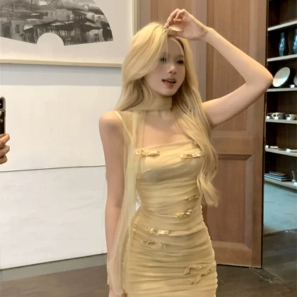 | nameOriginal | Mesh suspender summer sexy hip skirt with bow |