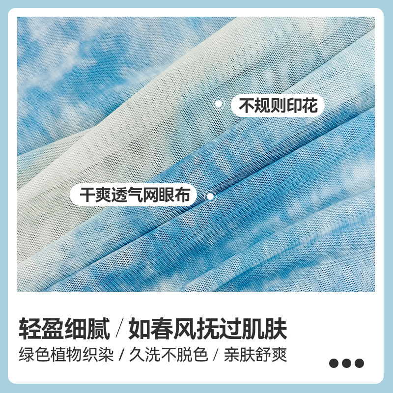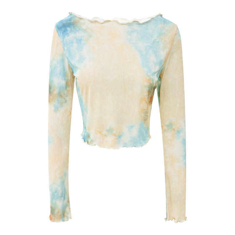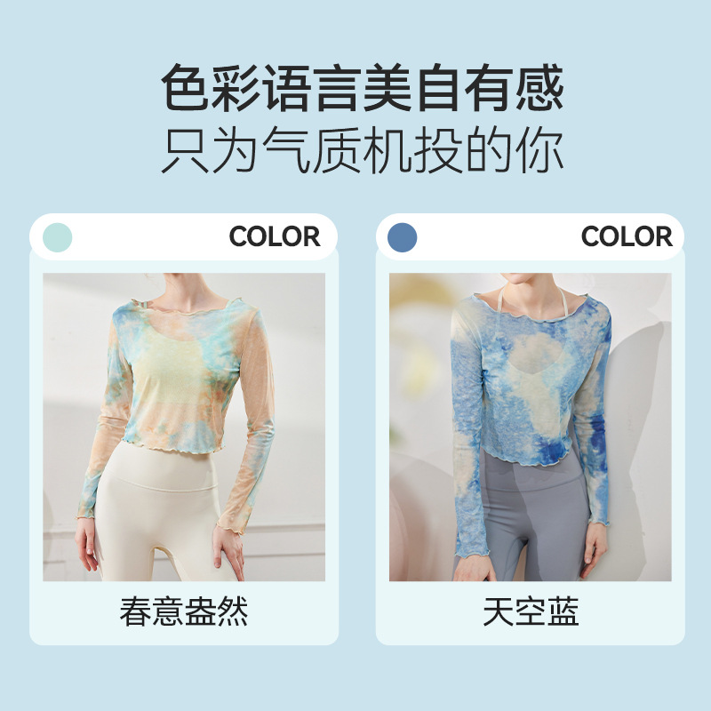Mesh Yoga T-shirt Women's Summer New Spice Girls Pure Desire Tie-dyed off-shoulder Thin Perspective Long-sleeved Blouse