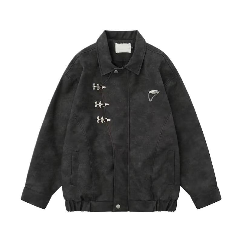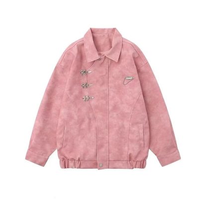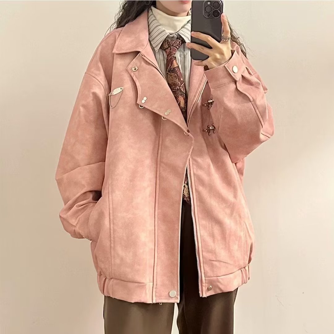 | nameOriginal | Metal Buckle Pink Leather Coat Women's Trendy Brand Street High-end Design Sense Loose All-match Lapel American Style Trendy Jacket |