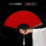 Metal frame iron fan for men and women, aluminum alloy folding fan, white with tassels, ancient style, portable for summer