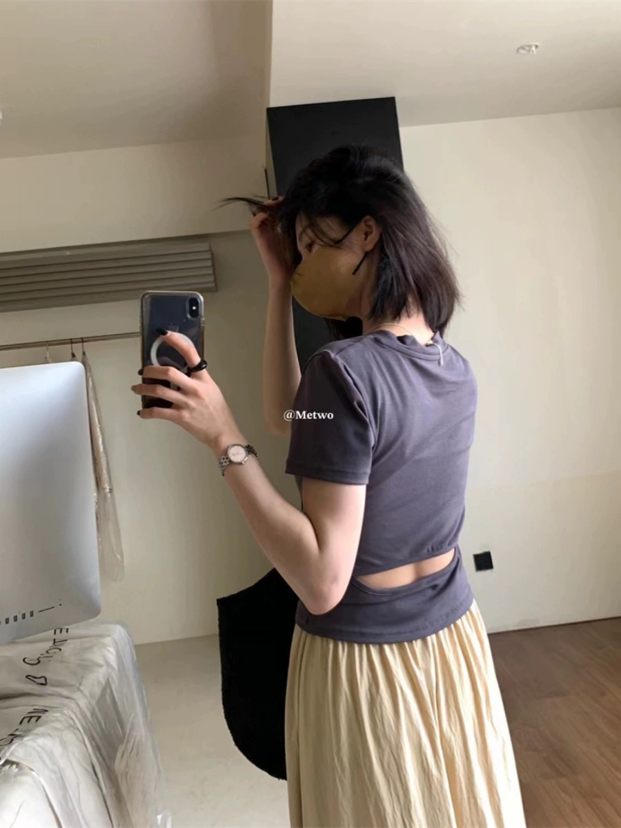 METWO new shoulder summer new waistless niche tops