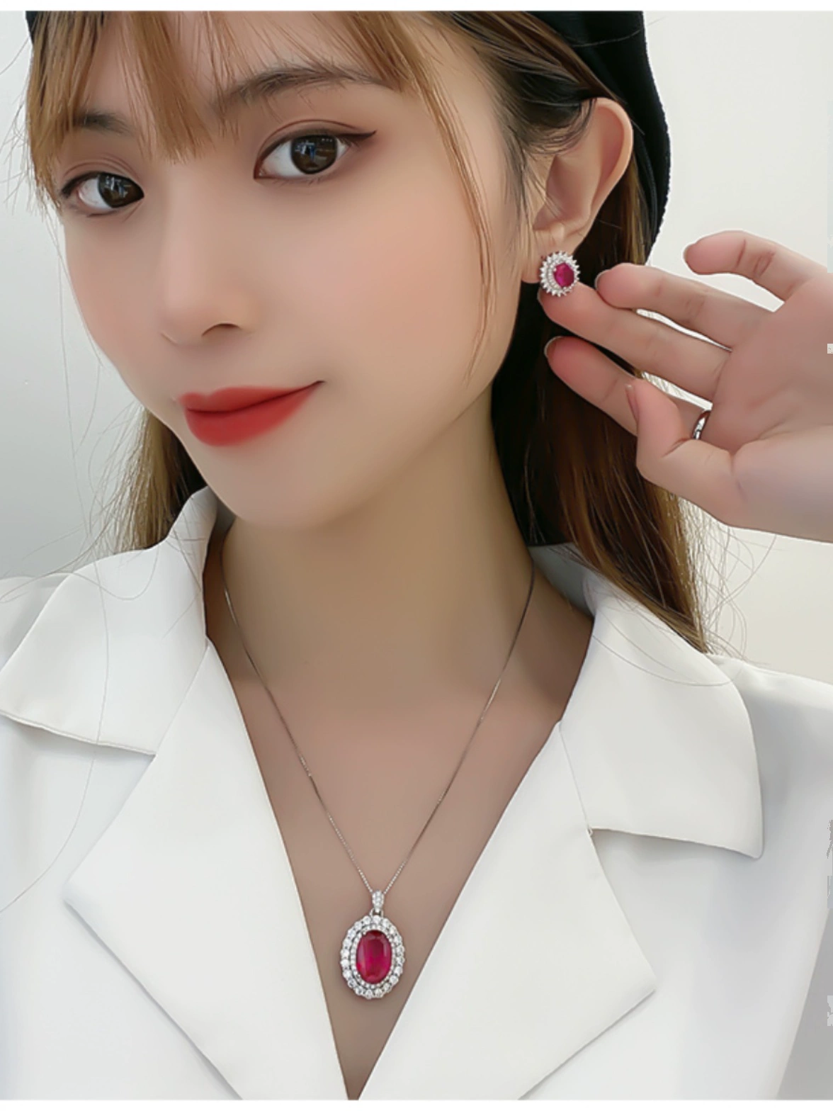 | nameOriginal | Micro-set simulated diamond and ruby earrings for women, fashionable and personalized earrings 2020 new s925 sterling silver set X194 |