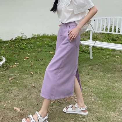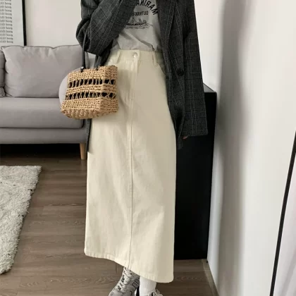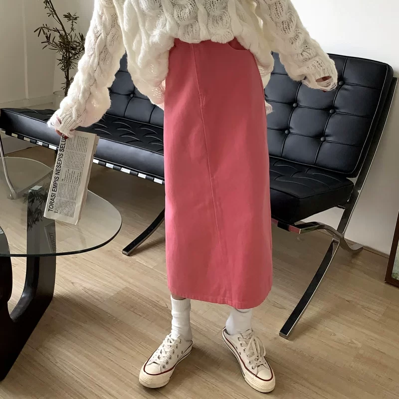 | nameOriginal | Mid-length fat mm elastic waist slimming denim skirt |