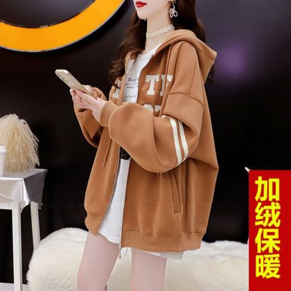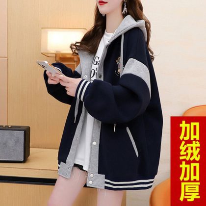 | nameOriginal | Mid-length Hooded Sweatshirt for Female Students Autumn and Winter Fleece-lined Thickened Loose Large Size Casual All-match Baseball Coat for Women |