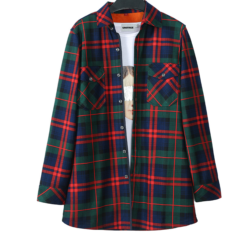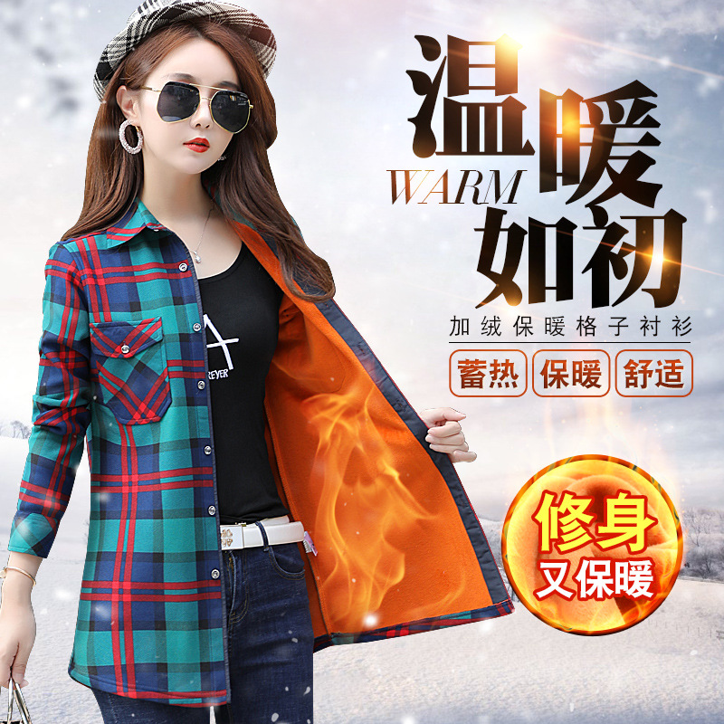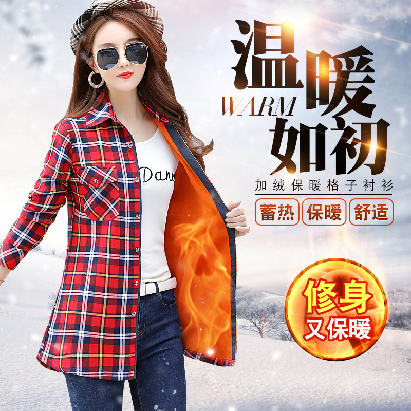 Mid-length Plaid Fleece-lined Thickened Shirt Women's Long-sleeved Warm Autumn and Winter 2022 New Arrival Thickened All-match Top Large Size