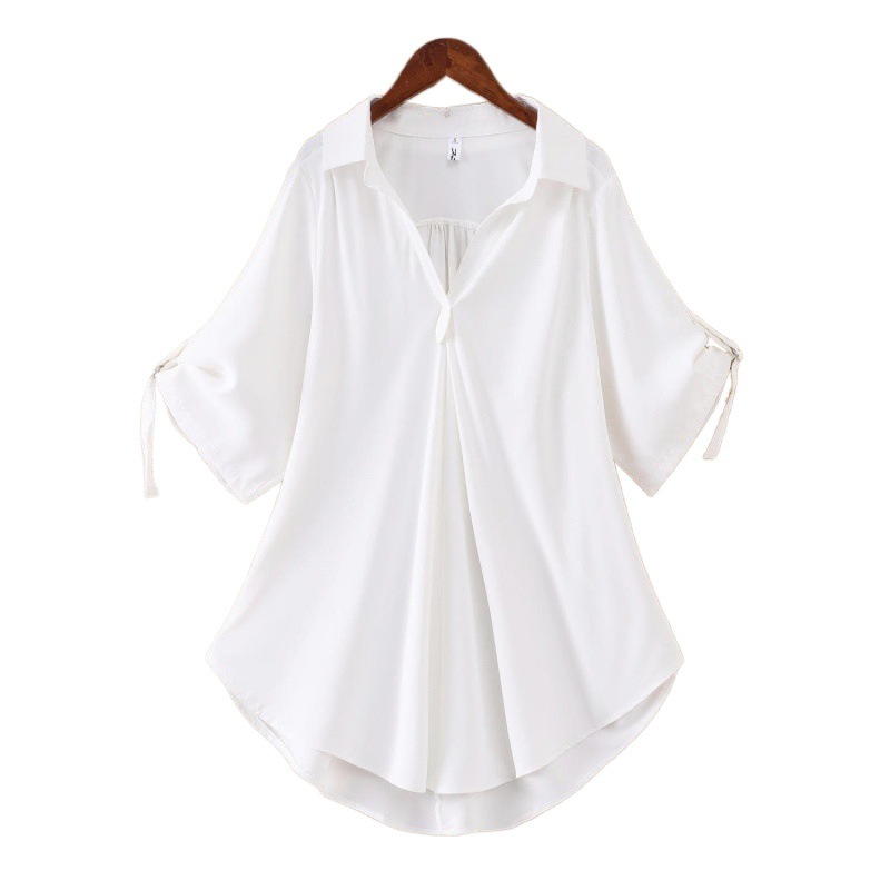 | nameOriginal | Mid-length short-sleeved chiffon shirt for women 2024 summer New plus size loose waist slimming chiffon shirt top for women |