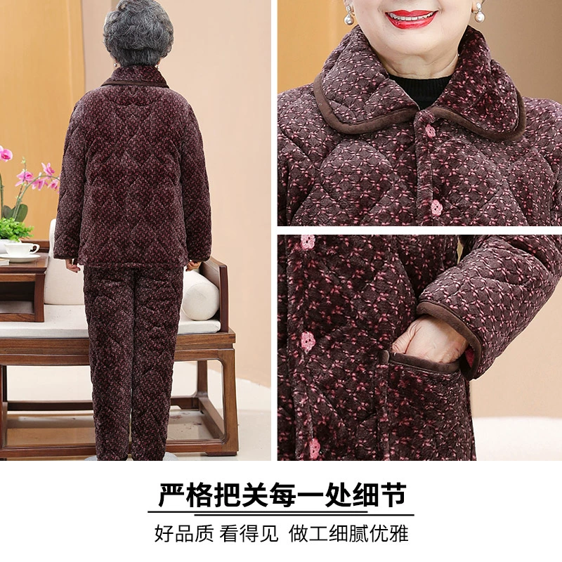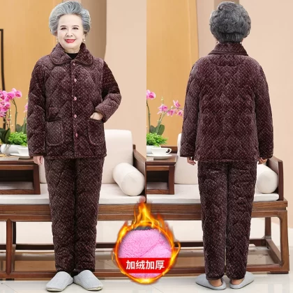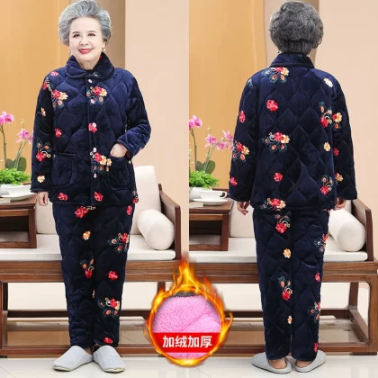 | nameOriginal | Middle-aged and elderly autumn and winter clothing plus velvet quilted pajamas set grandma thickened home cotton clothing mother cotton coat jacket women |