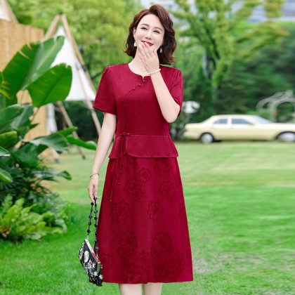 | nameOriginal | Middle-aged and elderly dress 2024 summer new western-style noble clothes 50-year-old mother summer knee-length skirt |