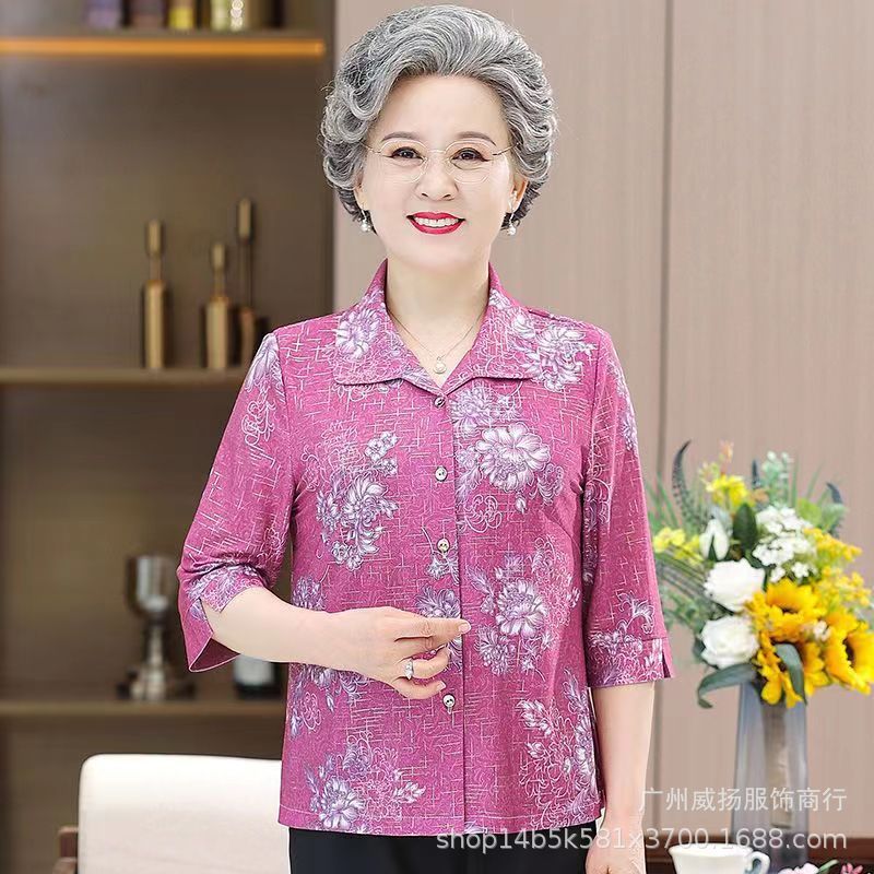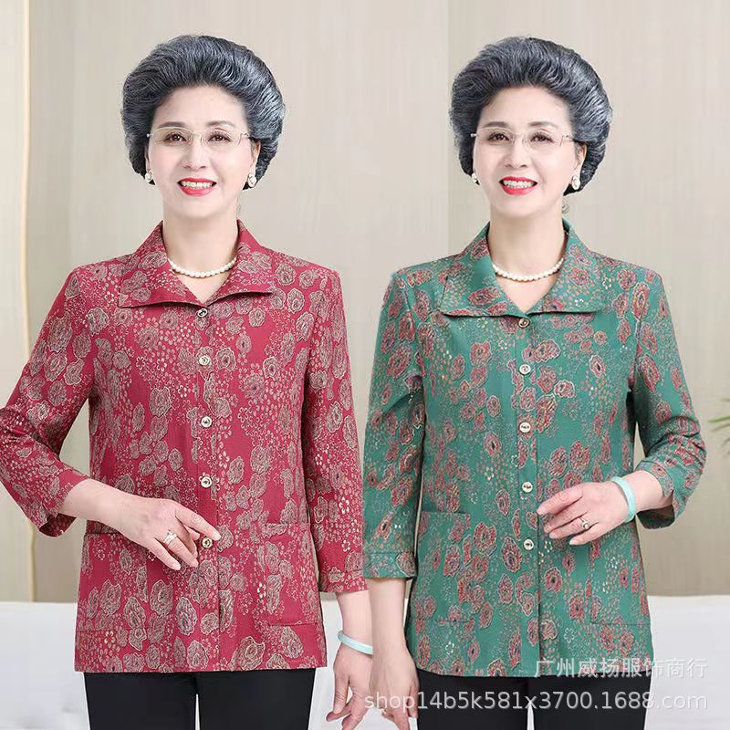 | nameOriginal | Middle-aged and elderly mother lapel long sleeve cardigan multi-color T-shirt rural market sale run volume supply |