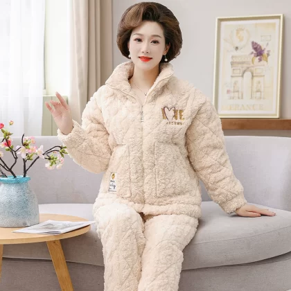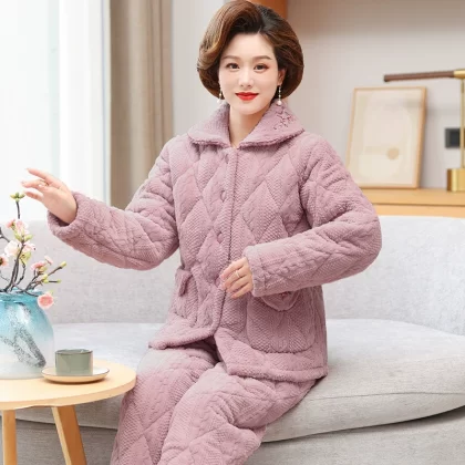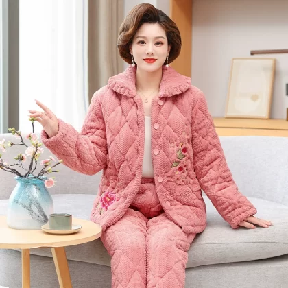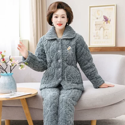 | nameOriginal | Middle-aged and elderly mother's pajamas women's winter three-layer thickened plus velvet coral velvet quilted winter home clothes set for the elderly |