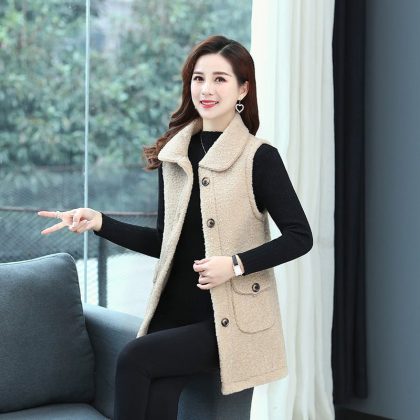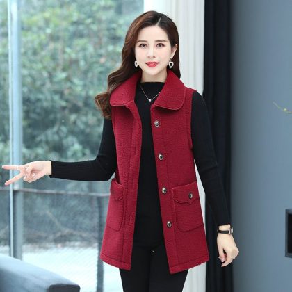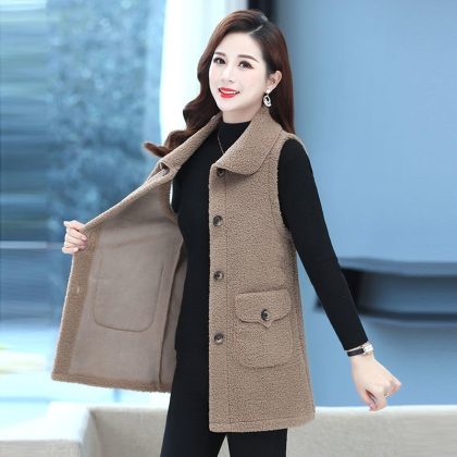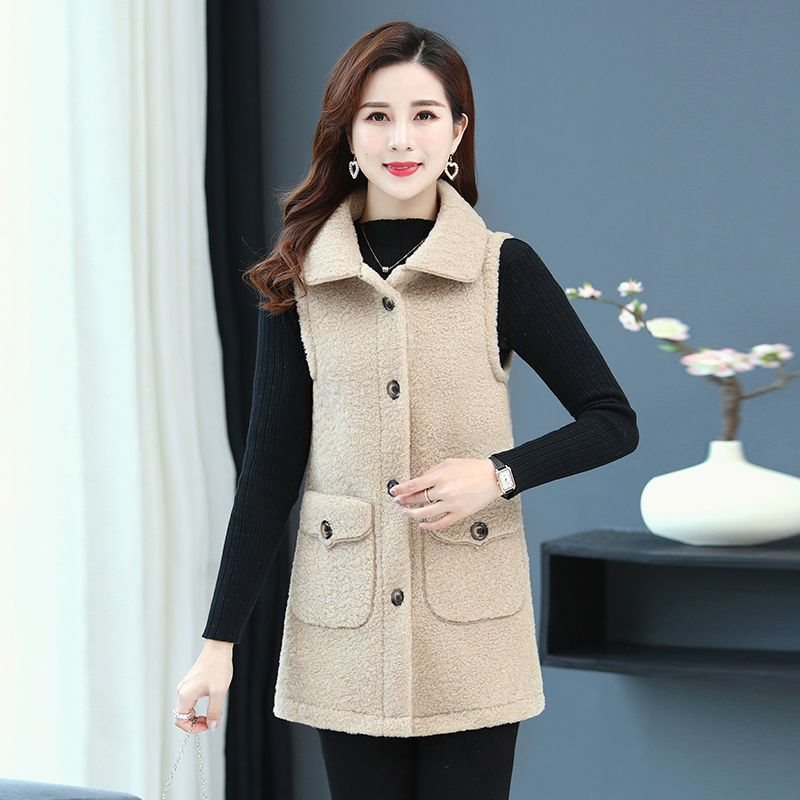 | nameOriginal | Middle-aged and elderly plus size lambswool vest female mother spring and autumn fur one-piece waistcoat middle-aged lady vest jacket |