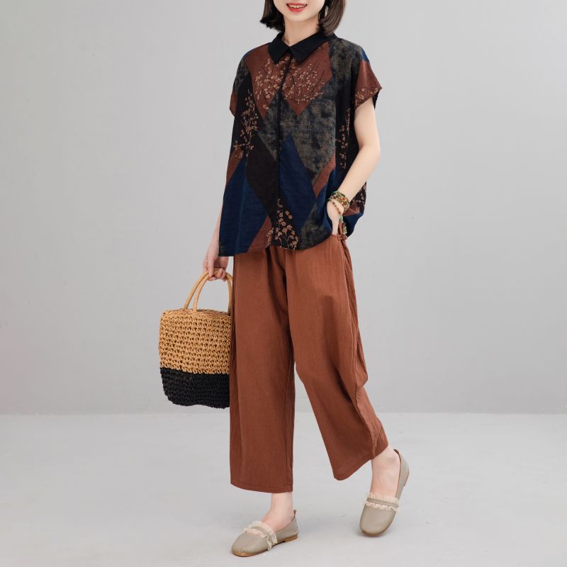 | nameOriginal | Middle-aged and elderly women's 2024 summer new mother's top T-shirt suit western retro plus size cotton pants two-piece set |