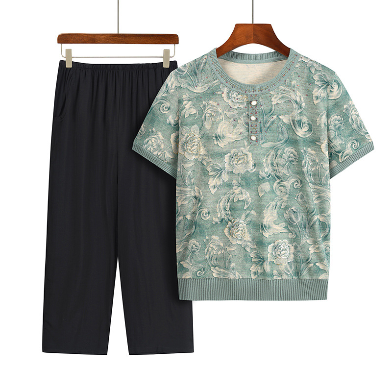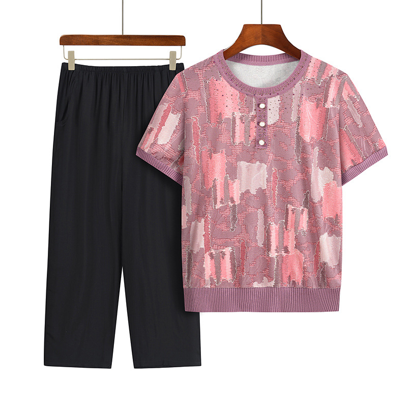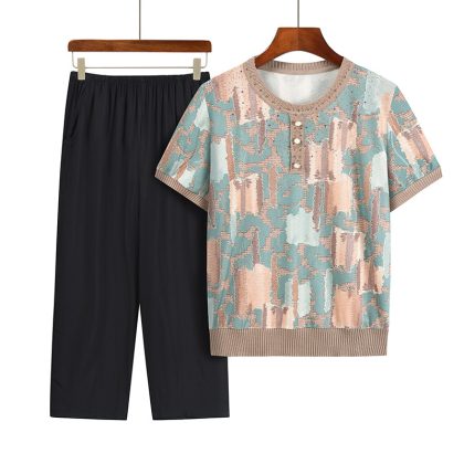 | nameOriginal | Middle-aged and elderly women's 50-year-old summer sweater short-sleeved new top 2023 mother's loose casual two-piece suit |