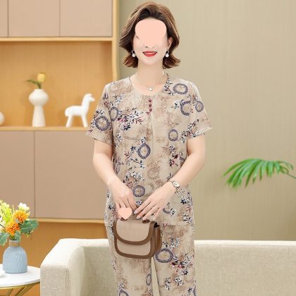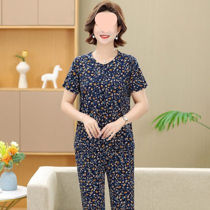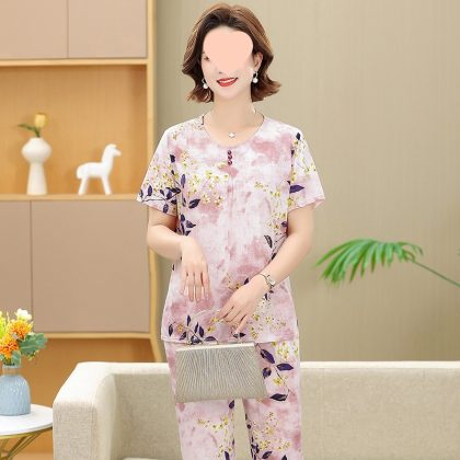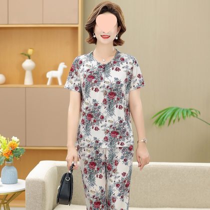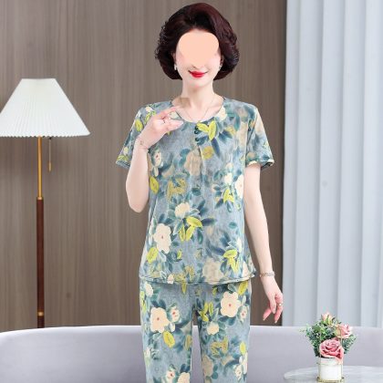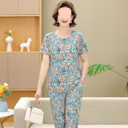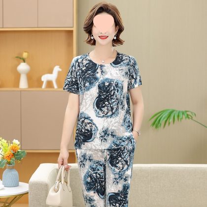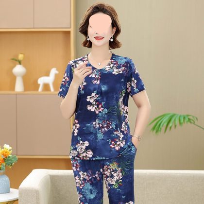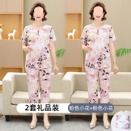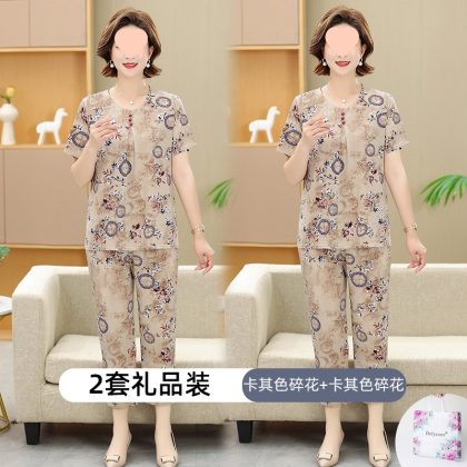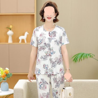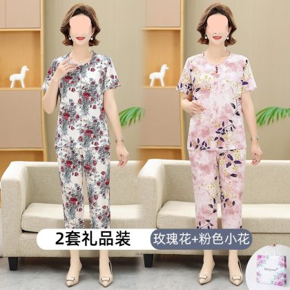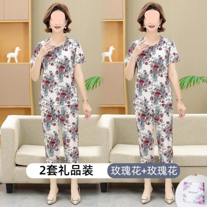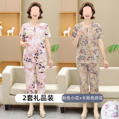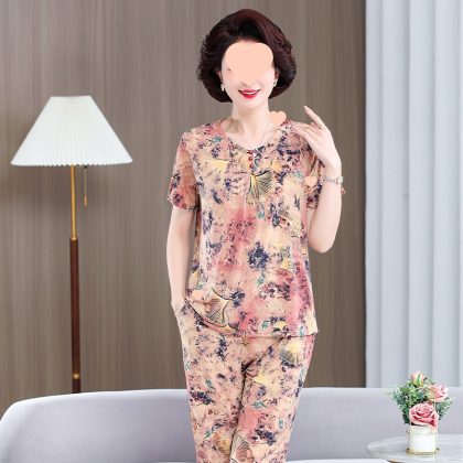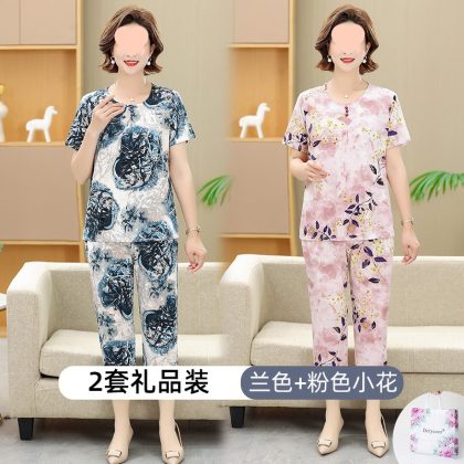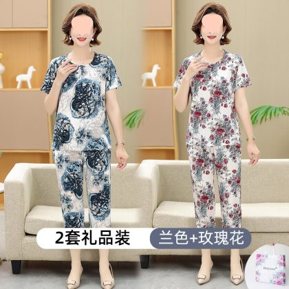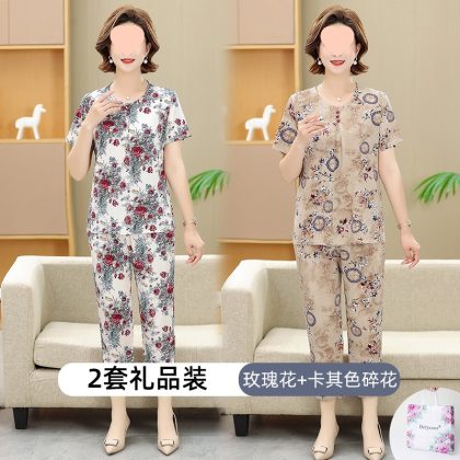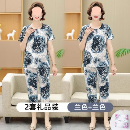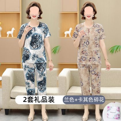 | nameOriginal | Middle-aged and elderly women's clothing mother summer clothing grandmother casual fashion ice silk suit breathable elderly short sleeve top thin |