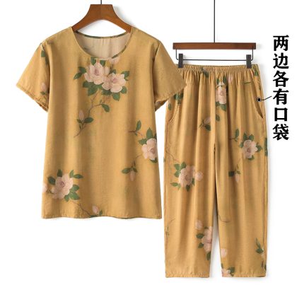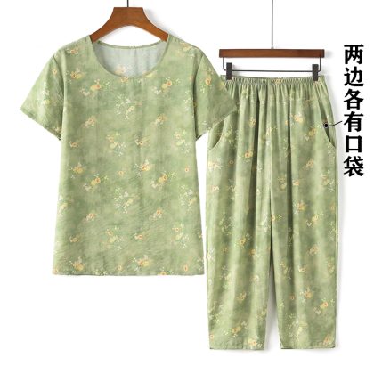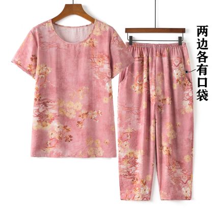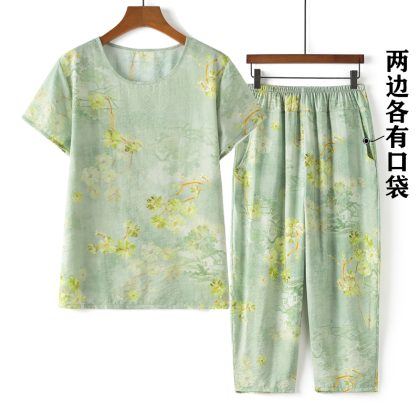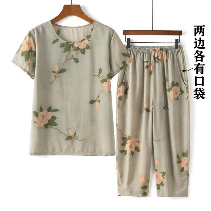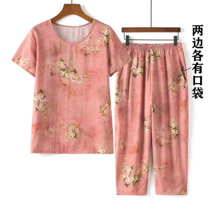| nameOriginal | Middle-aged and elderly women's summer clothes suit old mother's cotton silk top old woman's short-sleeved two-piece clothes for the elderly |