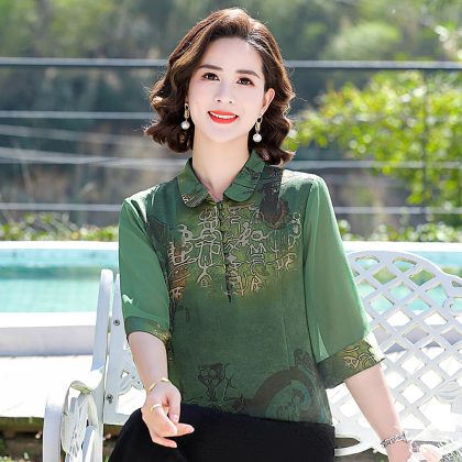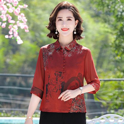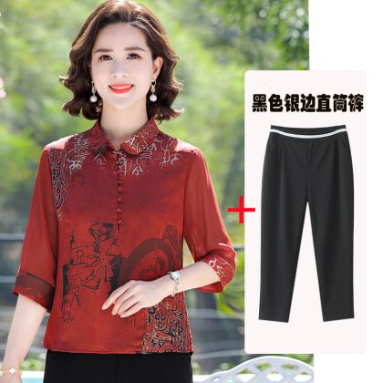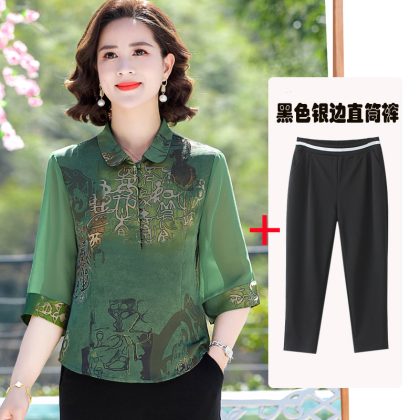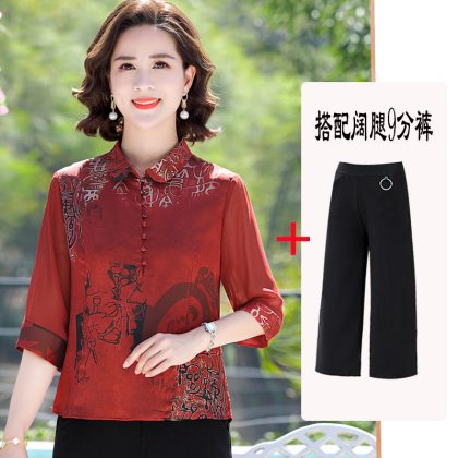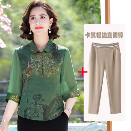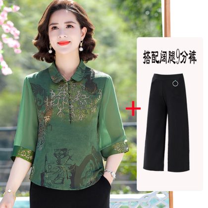 | nameOriginal | Middle-aged mother spring and autumn suit foreign-style middle-aged and elderly women's summer casual chiffon small shirt temperament clothes two-piece set |